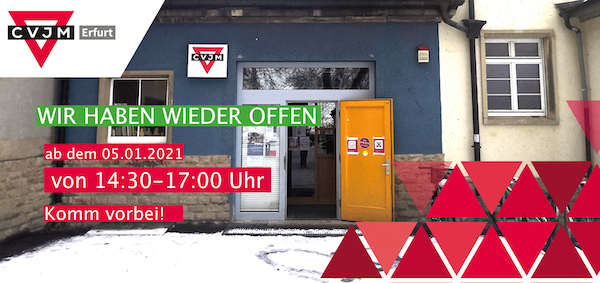 Als CVJM Erfurt e.V. wollen wir Beziehungen bauen. Basierend auf intensiver Gemeinschaft. Zur Zeit öffnen wir für kleine Gruppen mit Kontaktnachverfolgung. Außer am 08.01.2021 bleibt das Loop geschlossen.